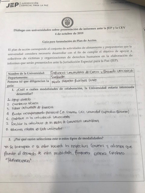 El día 3 y 4 de Octubre la Coordinación del Observatorio de Derechos Humanos y paz, acepto la invitación realizada por el instituto Colombo-Alemán para la Paz (CAPAZ) adscrito a la universidad de Göttingen quienes en colaboración con la Jurisdicción especial para la Paz-JEP y con la Comisión para el Esclarecimiento de la Verdad-CEV, realizaron un taller de formación y de diálogo con universidades de todo el país con la finalidad de generar sinergia y apoyo de las instituciones de educación superior en Colombia para apoyar a las organizaciones sociales de víctimas en la construcción de informes para presentar ante la JEP Y CEV, como aporte a la paz y al SIVJRNR. Allí se pudo contar la experiencia exitosa de UNICIENCIA y del Observatorio que junto con los estudiantes del semillero SIVICA han trabajado y siguen realizando actividades en apoyo a las víctimas del conflicto armado en Colombia en distintos hechos víctimizantes