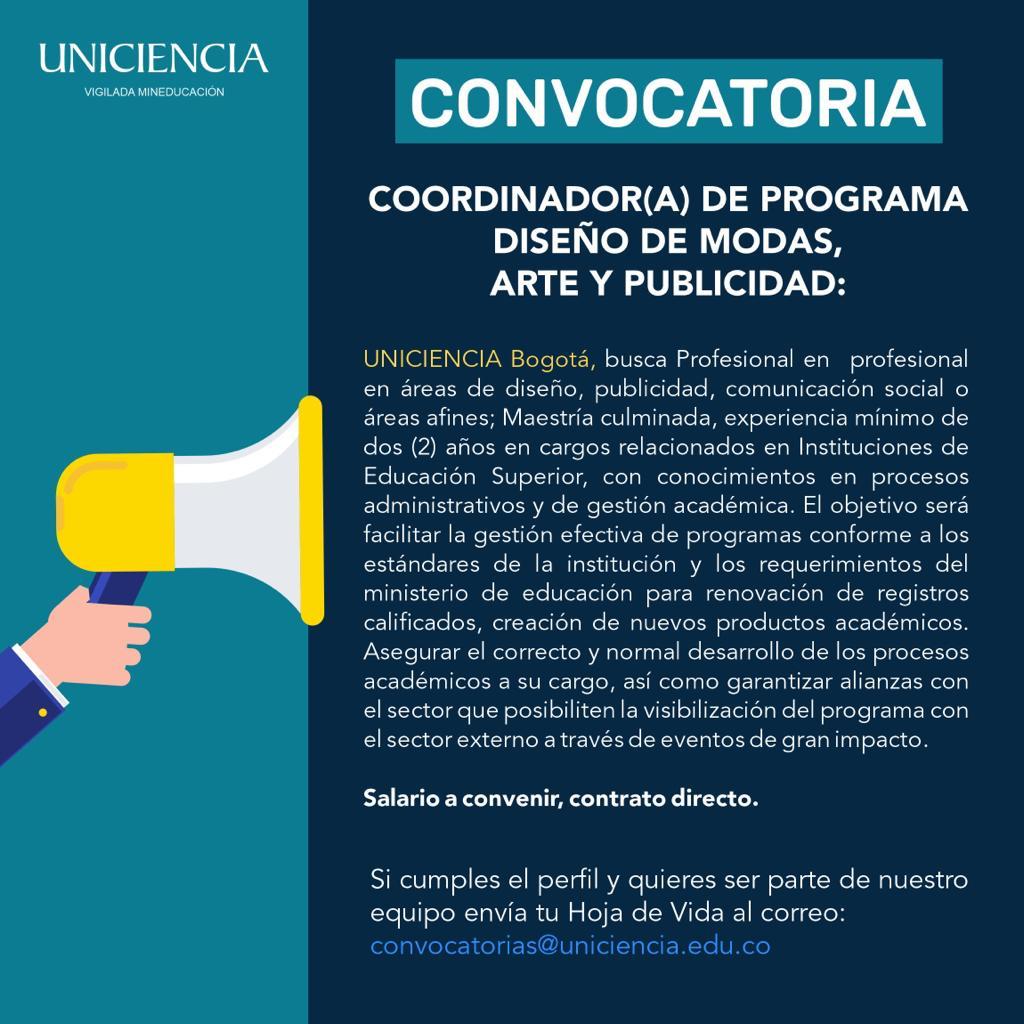 Convocatoria Coordinador(a) Programa de Diseño de Modas - Bogotá