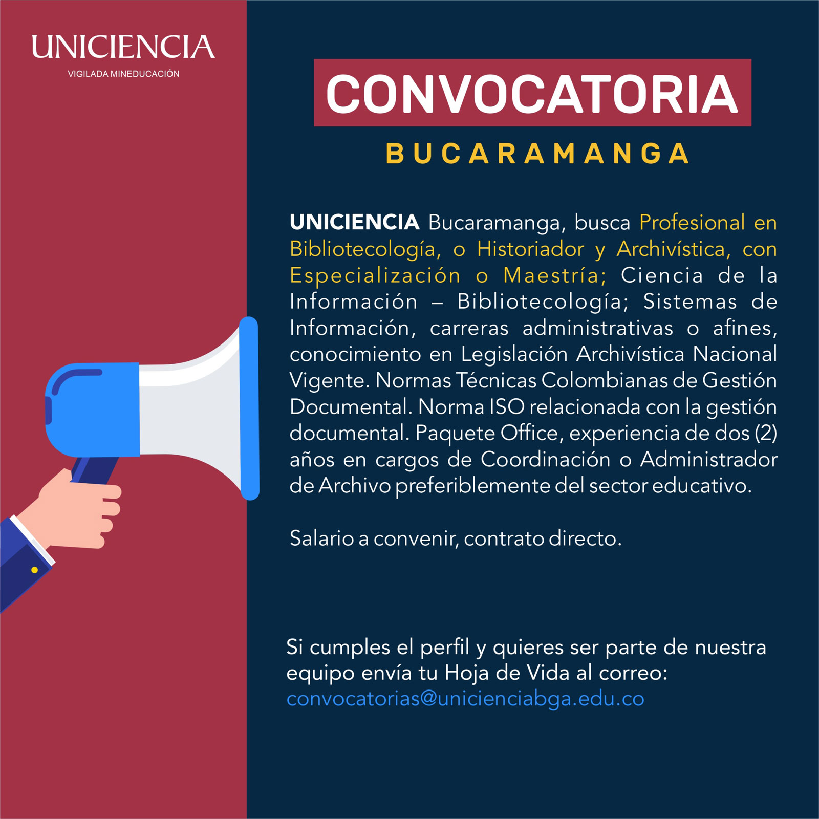 Convocatoria Profesional en Bibliotecología - Bucaramanga