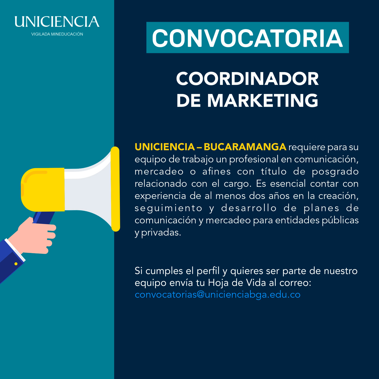 Convocatoria cargos administrativos - Área de comunicaciones