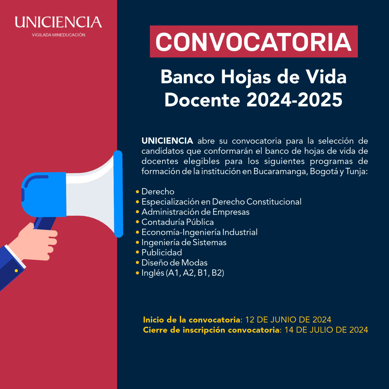 Convocatoria banco hojas de vida Docente 2024 - 2025