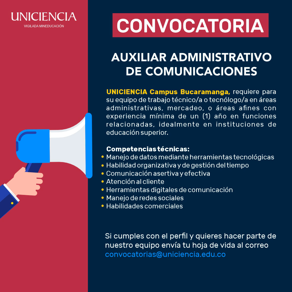 Convocatoria Auxiliar en áreas administrativas - Bucaramanga Octubre 2024