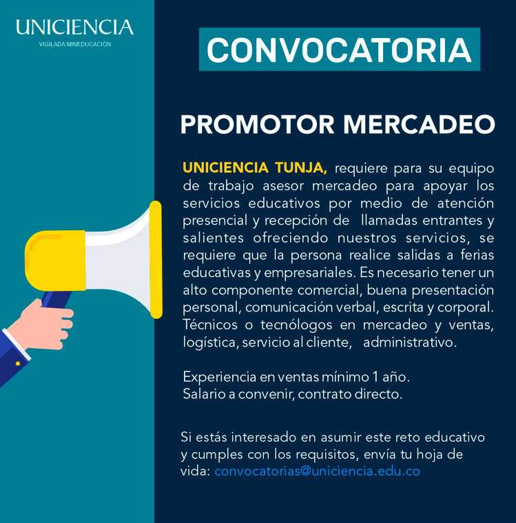 Convocatoria promotor de mercadeo Tunja - Octubre 2024