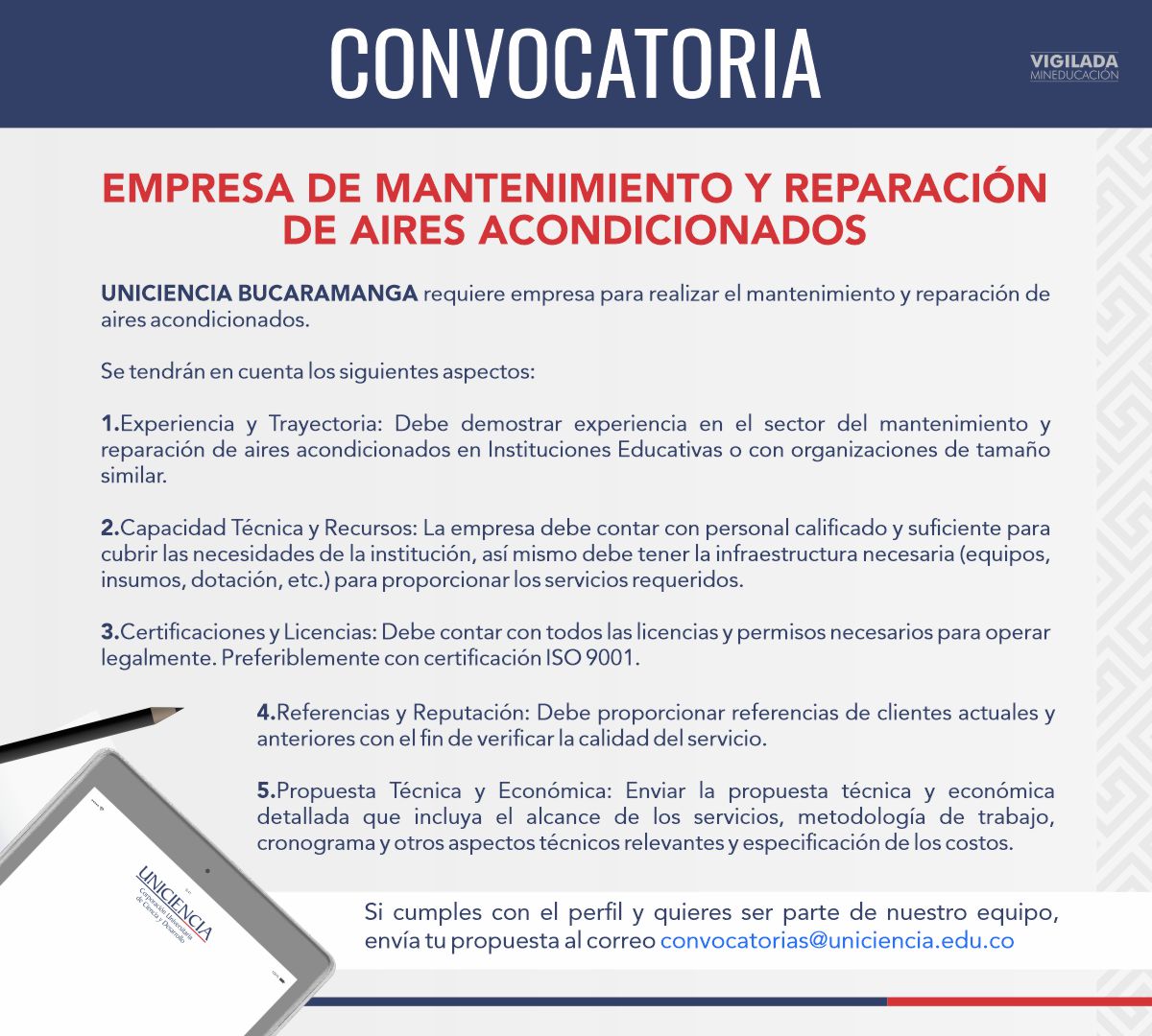Convocatoria Empresa de mantenimiento aires acondicionados