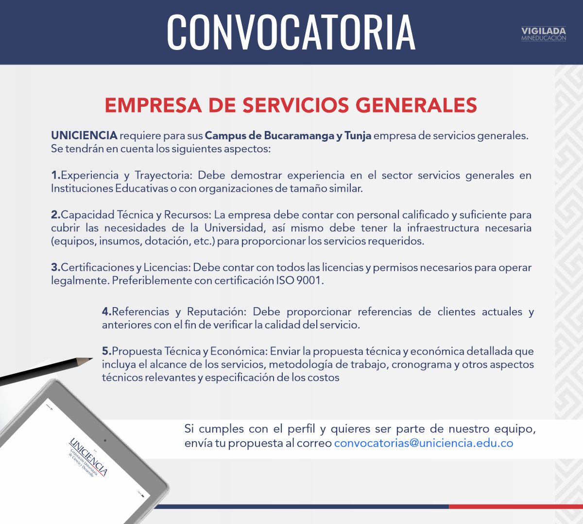 Convocatoria Empresa de servicios generales - Noviembre 2024