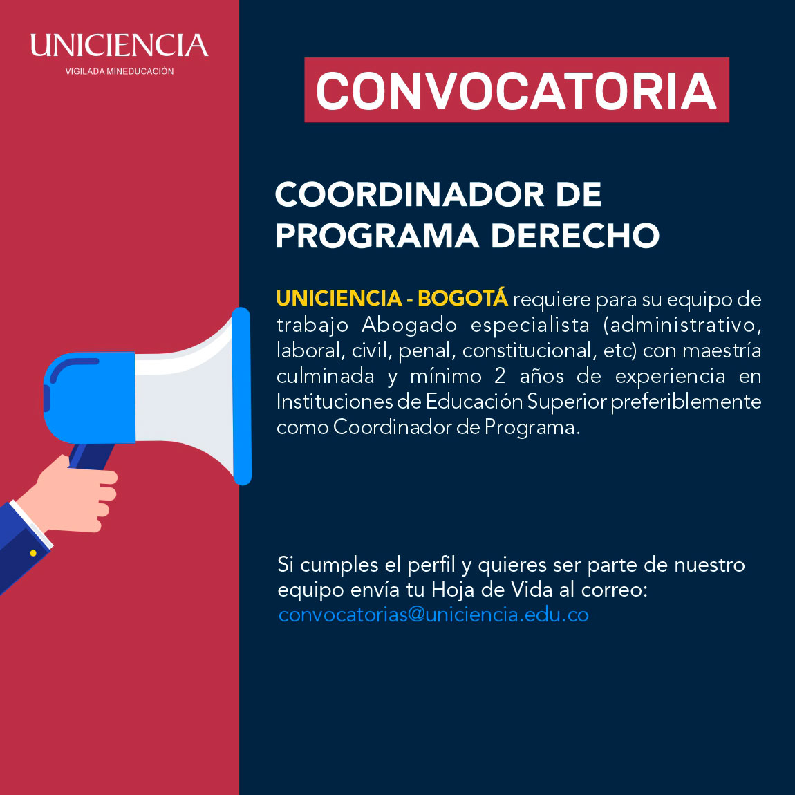 Convocatoria Coordinador Programa de Derecho Bogotá