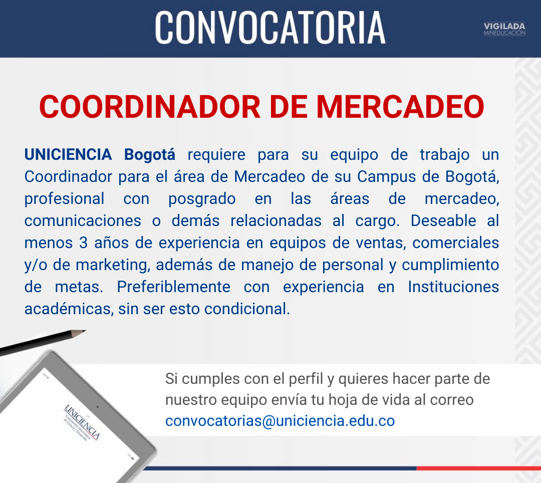 Convocatoria Coordinador de Mercadeo Bogotá - Febrero 2025