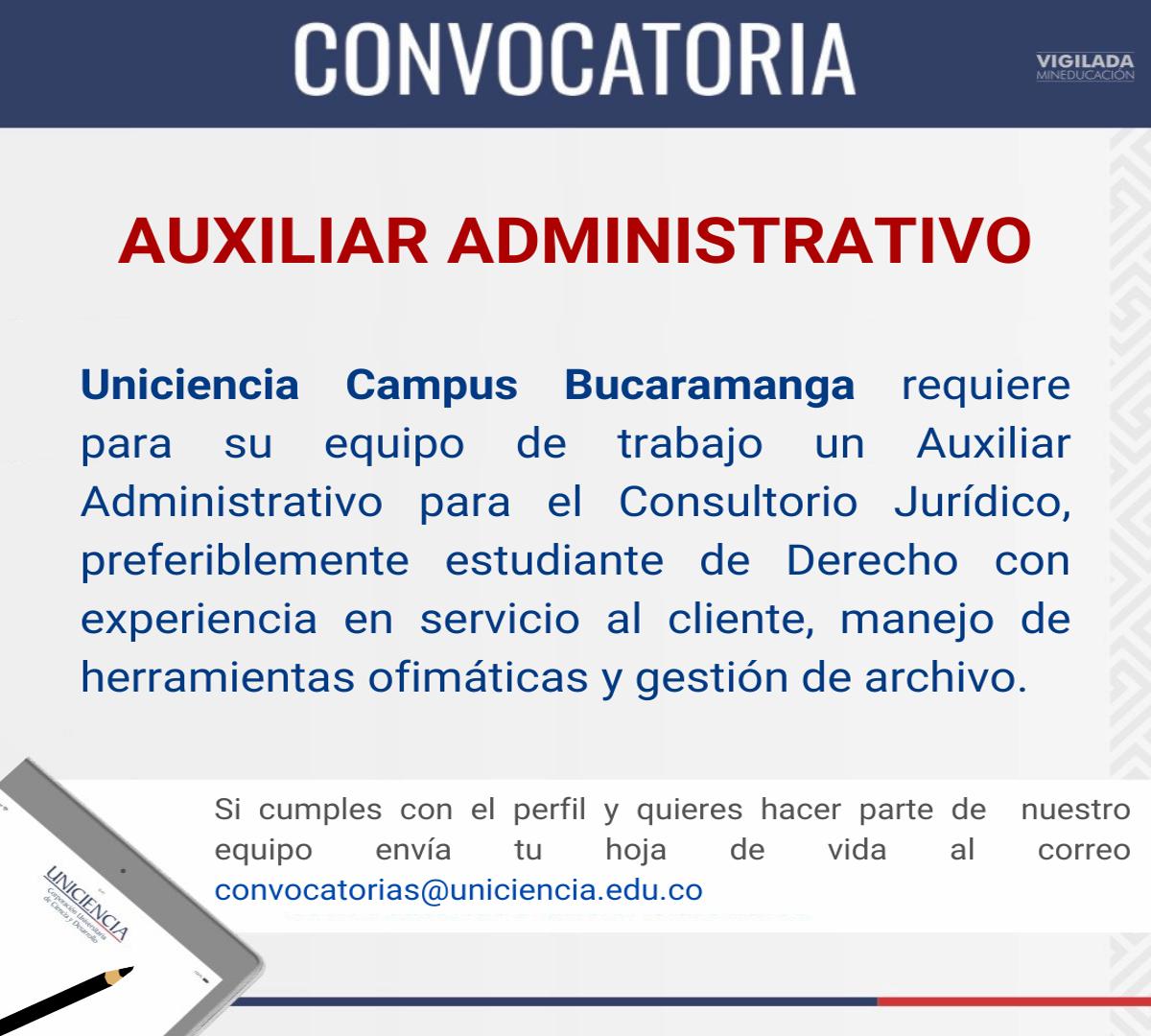 Convocatoria auxiliar administrativo Bucaramanga - Abril 2025