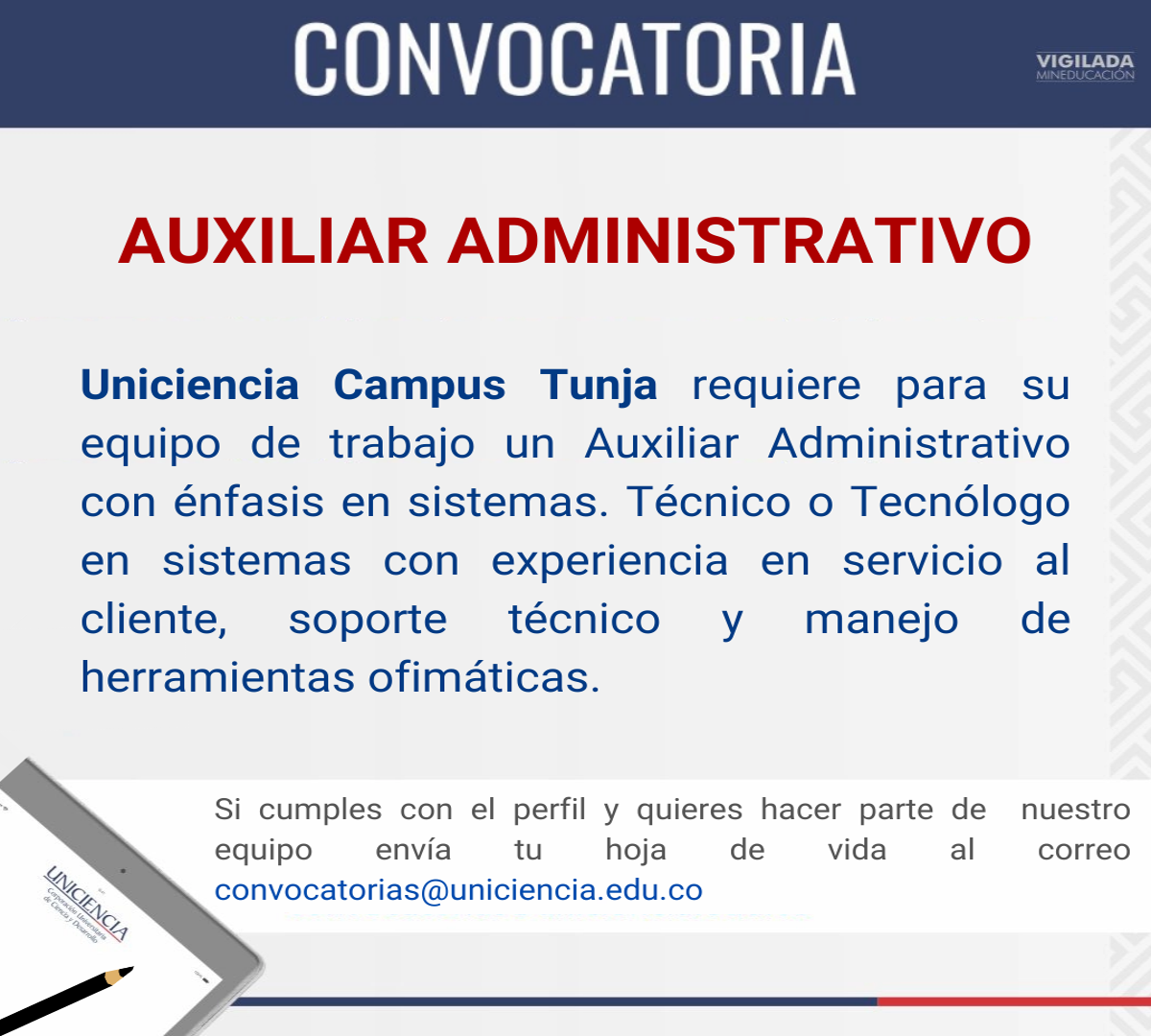 Convocatoria auxiliar sistemas Tunja - Mayo 2025