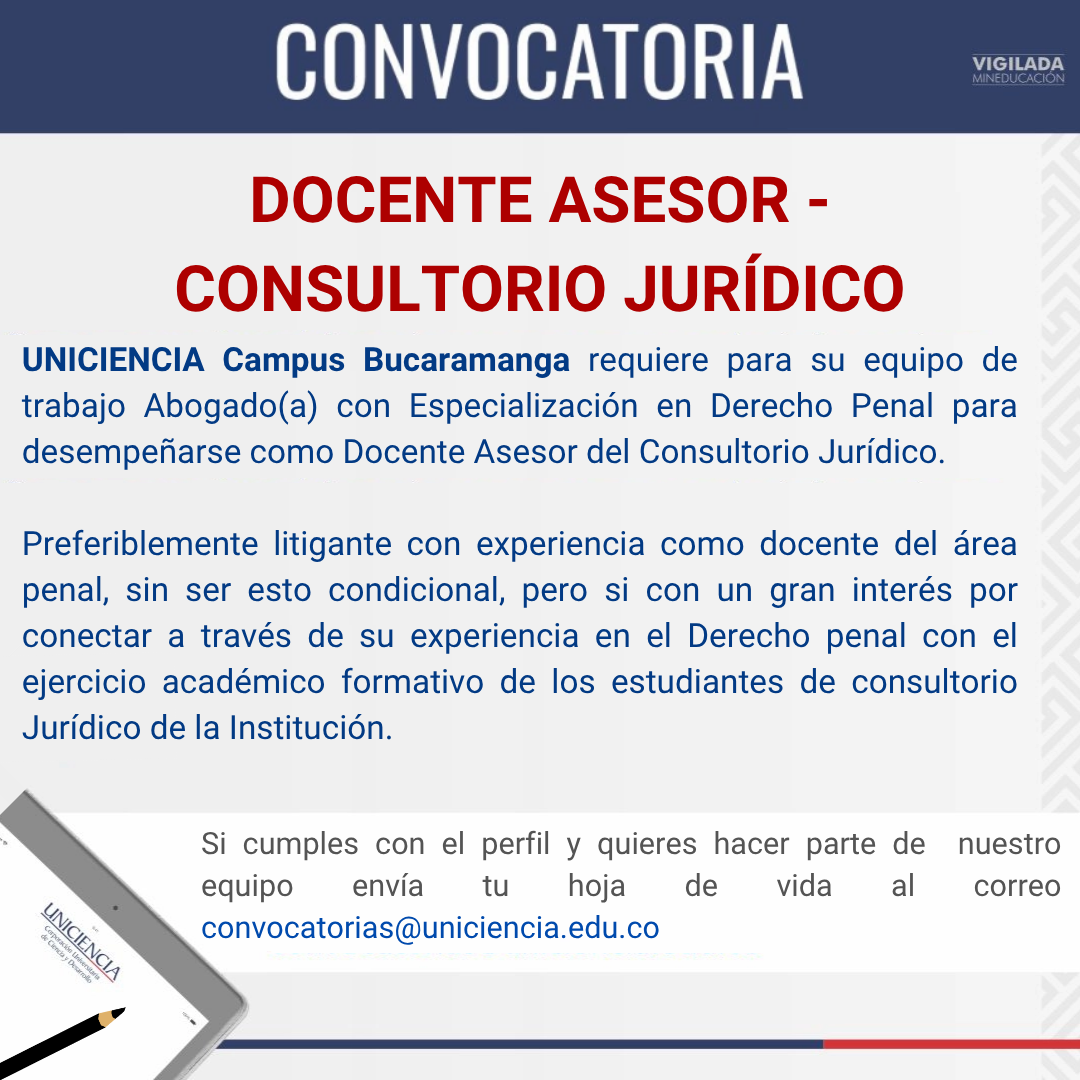 Convocatoria Docente Asesor Consultorio Jurídico - Bucaramanga Noviembre 2025